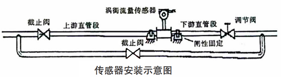 渦街流量計傳感器的組成部分包括檢測探頭、相關的電子線路以及旋渦發生體。它依據卡門渦街原理,當液體經過三角柱形旋渦發生體時,會在旋渦發生體兩側交替地產生有規則的旋渦,旋渦列在旋渦發生體下游非對稱地排列,且一側旋渦分離的頻率與速渡成正比。此時,檢測探頭會形成交變電信號,輸出與旋渦同步成正比的脈沖頻率信號。